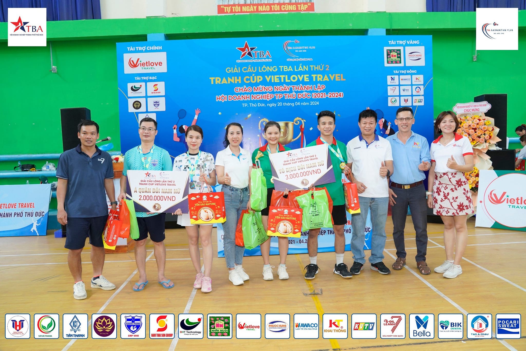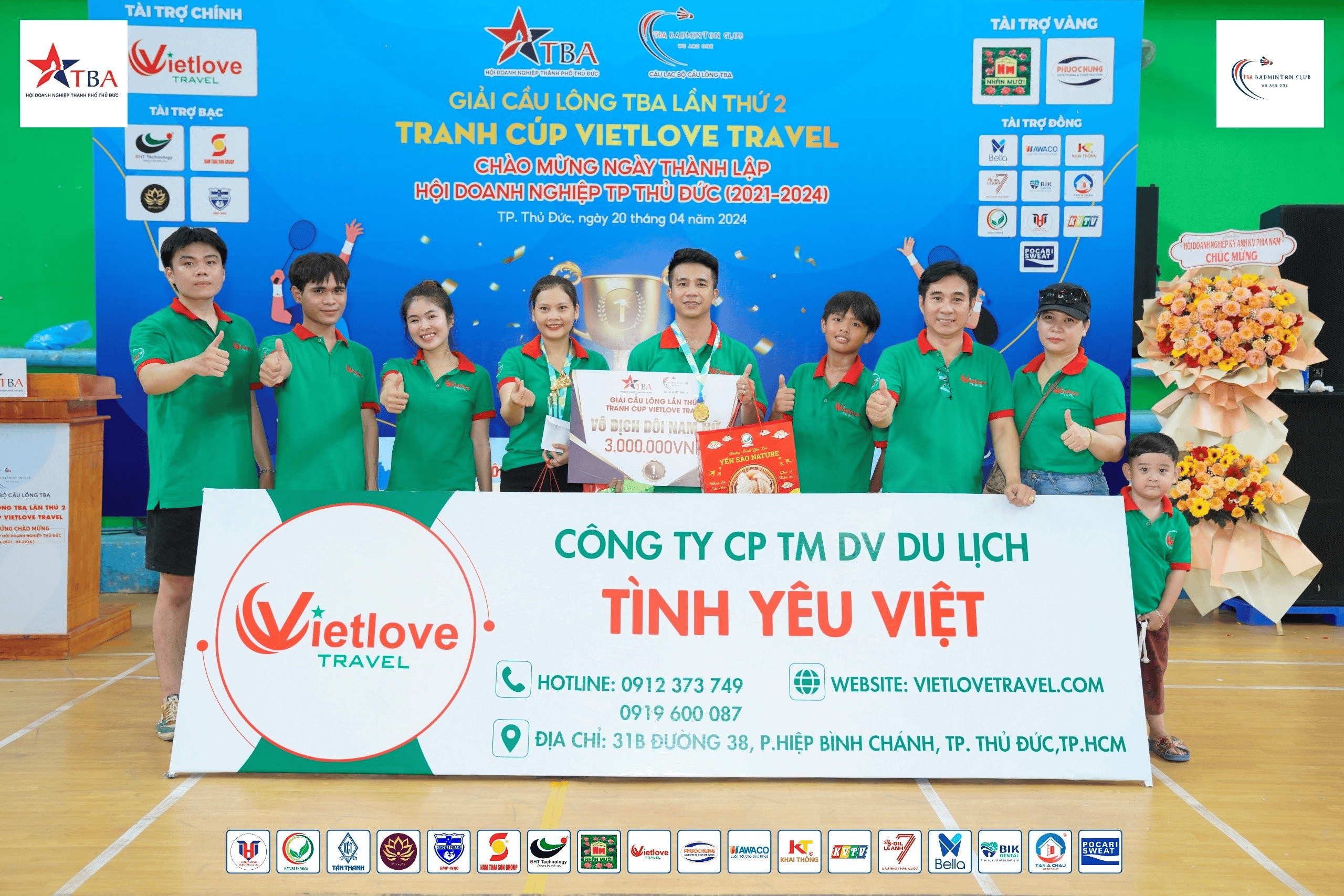Ở lần diễn ra giải thi đấu này do CLB Cầu lông TBA tổ chức, cùng với Đơn vị tài trợ chính CÔNG TY CỔ PHẦN THƯƠNG MẠI DỊCH VỤ DU LỊCH TÌNH YÊU VIỆT (VIETLOVE TRAVEL) - Đại diện: Ông Phan Văn Tâm - Ủy viên Ban Chấp hành Hội Doanh nghiệp TP. Thủ Đức và hàng loạt các Công ty, Doanh nghiệp khác đồng tài trợ..png)